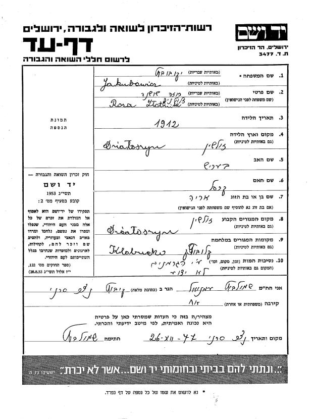 Page of Testimony 618971 Roza Shoshana Yakubowicz