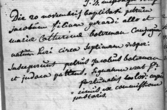 Doop Petrus Jacobus Allo (1764)
