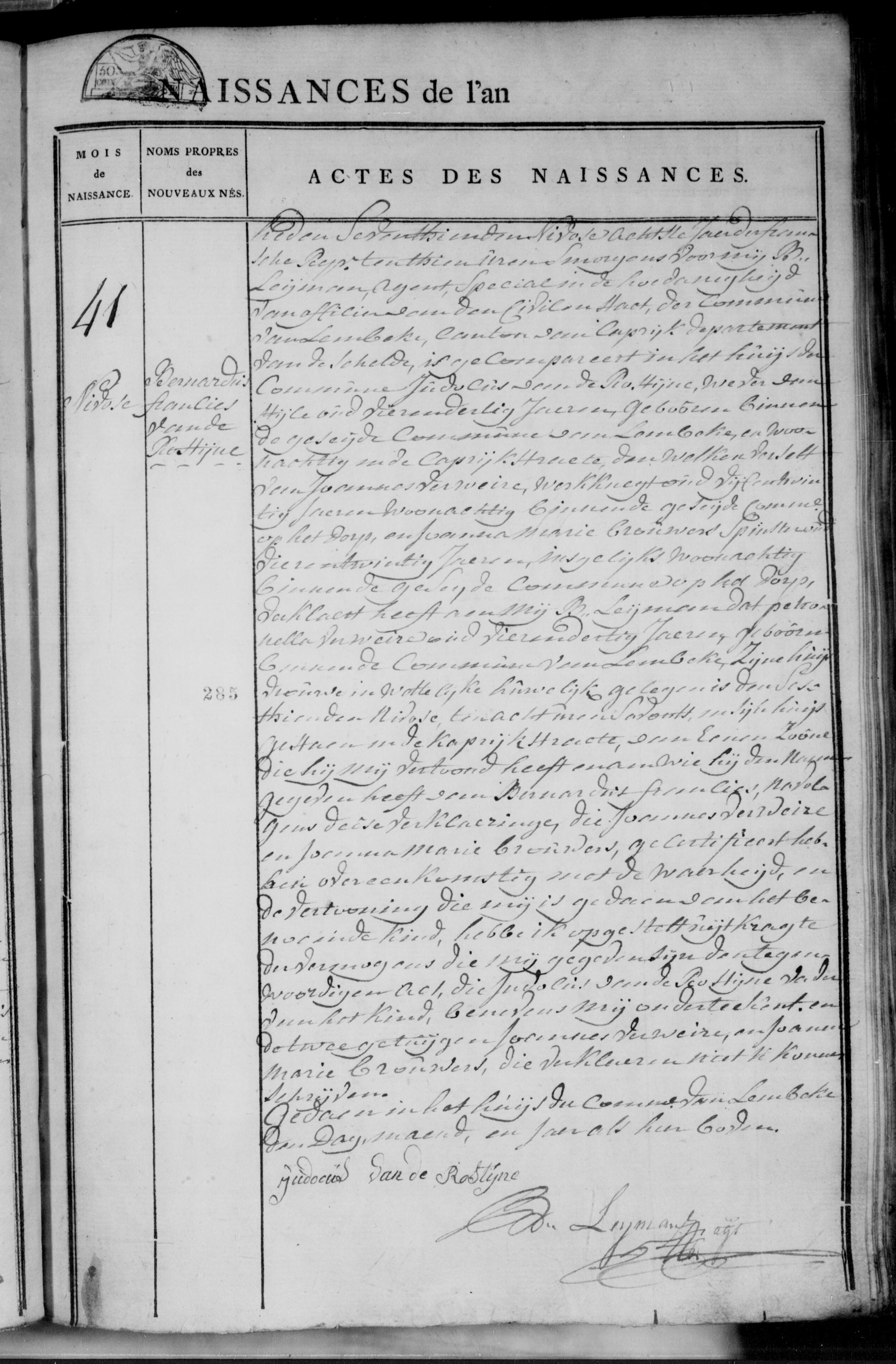 Geboorte, Bernardus Francies Van de Rostijne