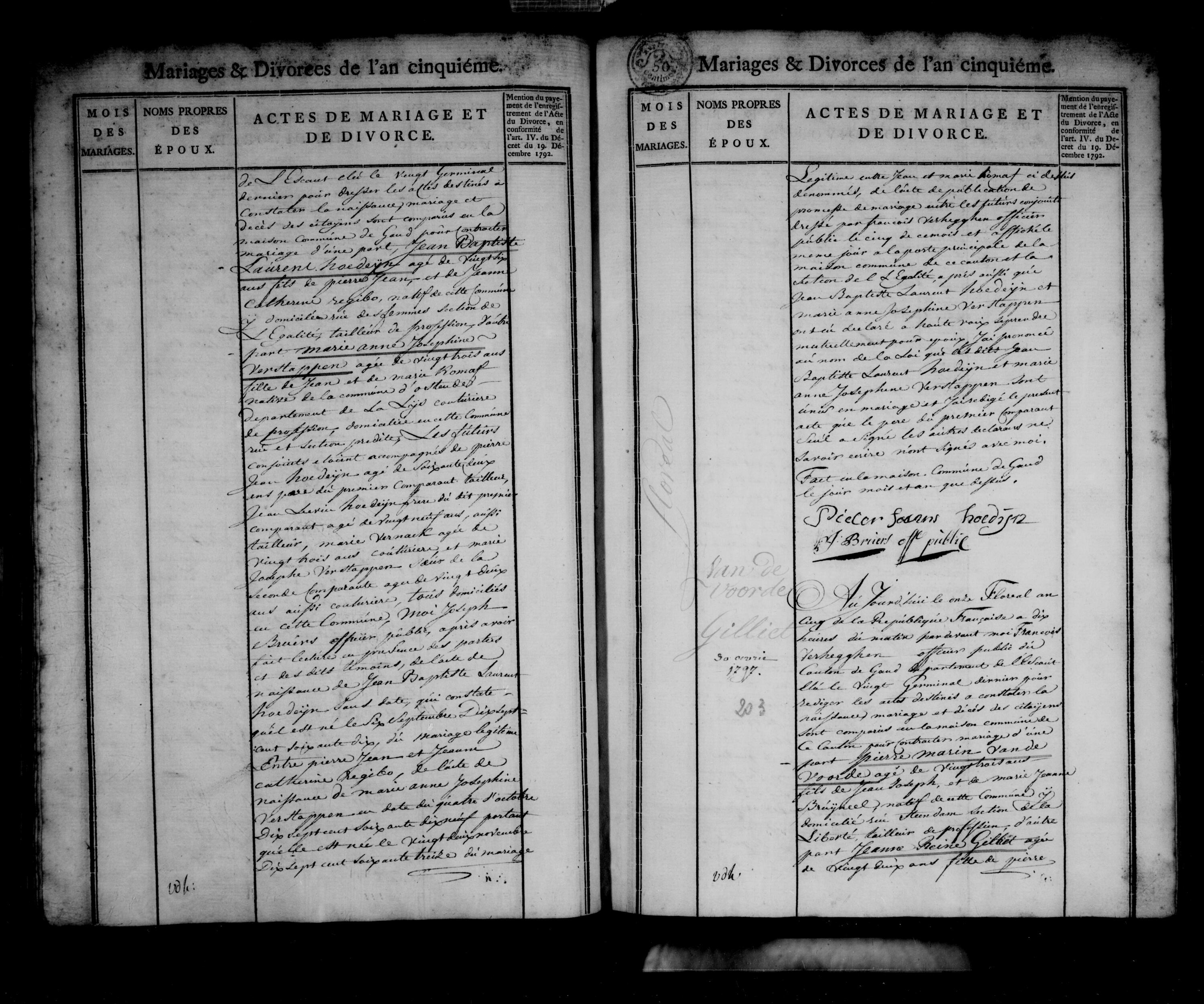 Huwel. Pierre Marin Van de Voorde & Jeanne Reine Gilliet (1797)