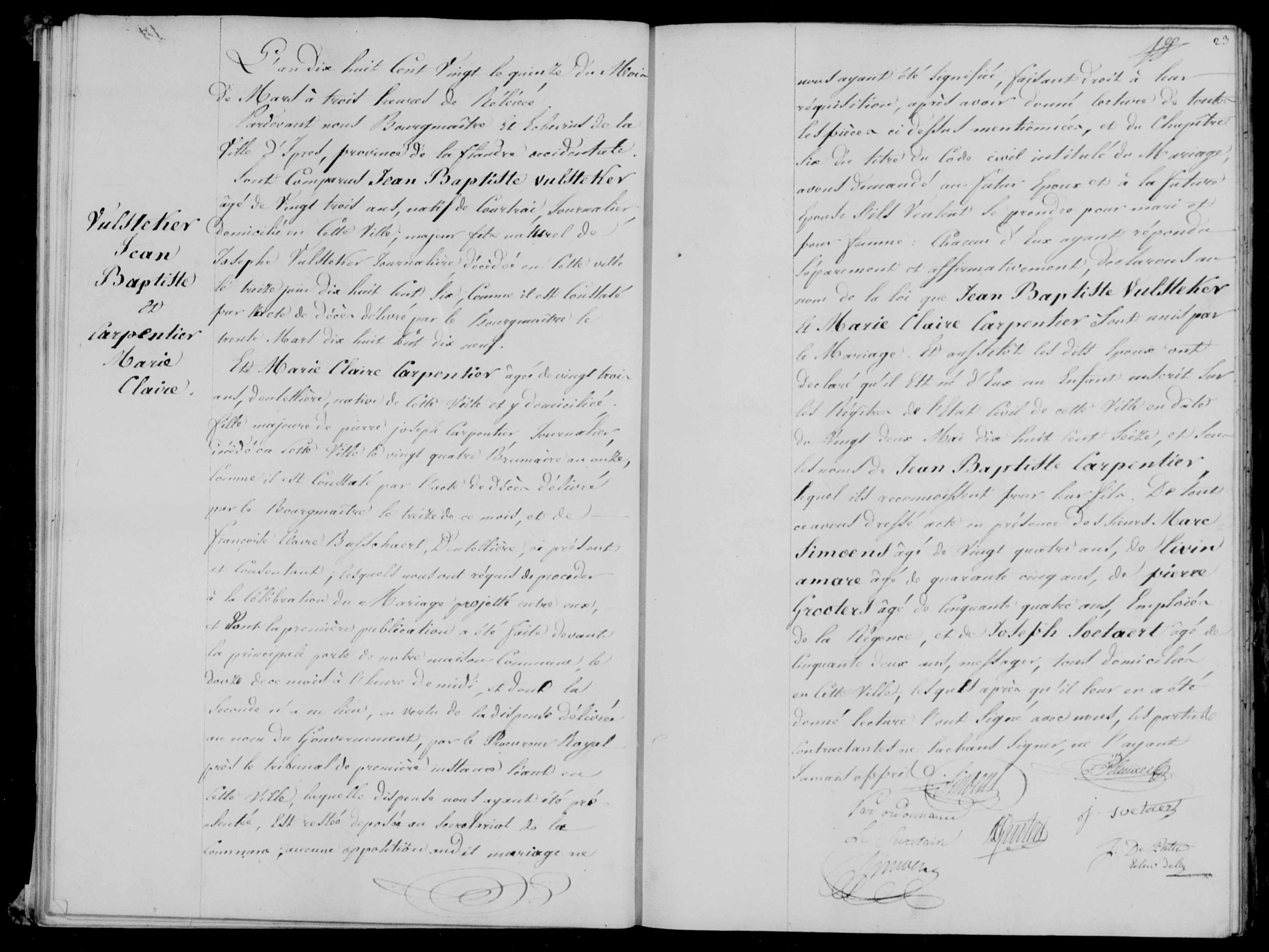 Huwel. Jean Baptiste Vulsteker & Marie Claire Carpentier (1820)