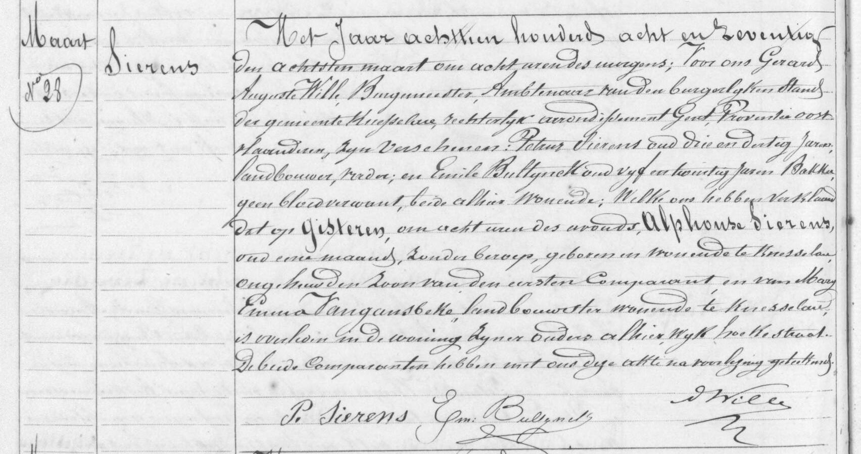 BS/O 1878 nr. 28, overl. Alphonse Sierens
