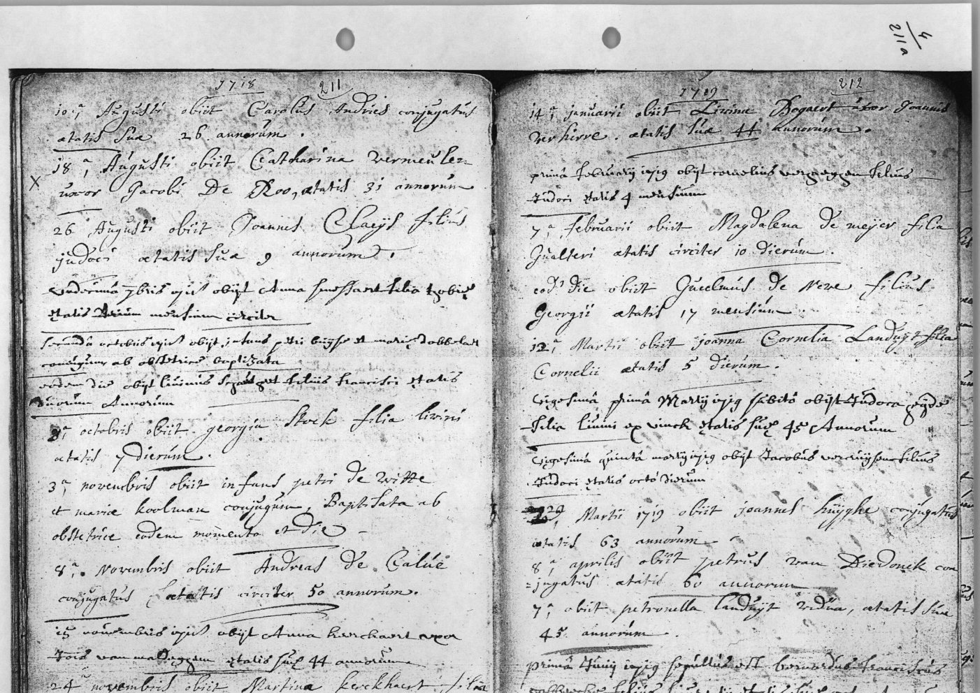 Overlijdens 1706-1735 p. 211 Catharina Vermeulen