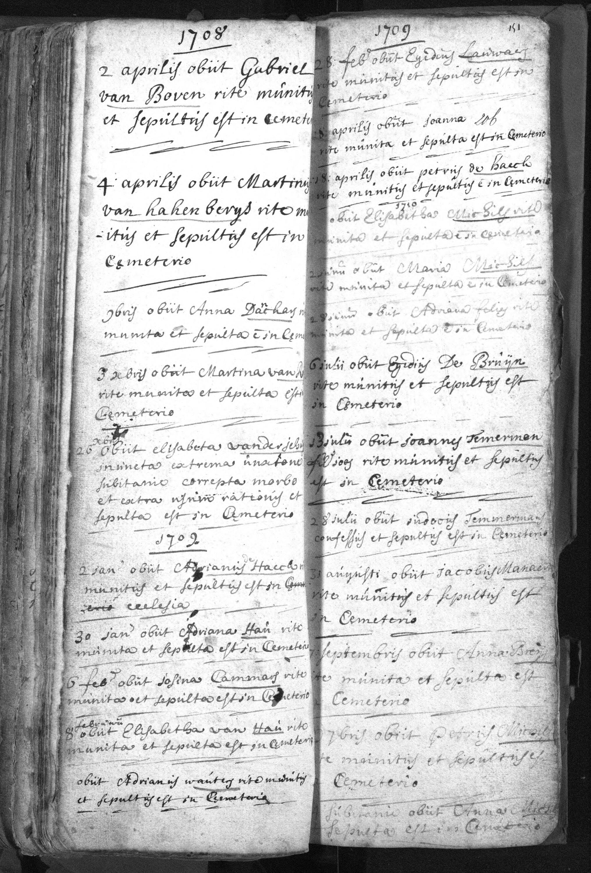 Begr. 1666-1759 f150 v° Martina Van Royen
