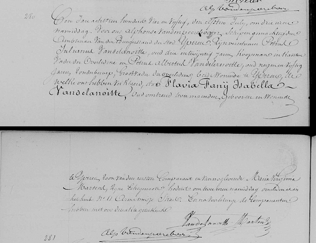 BS/O 1854 #280, overl. Flavia Fanij Isabella Vandelanoitte