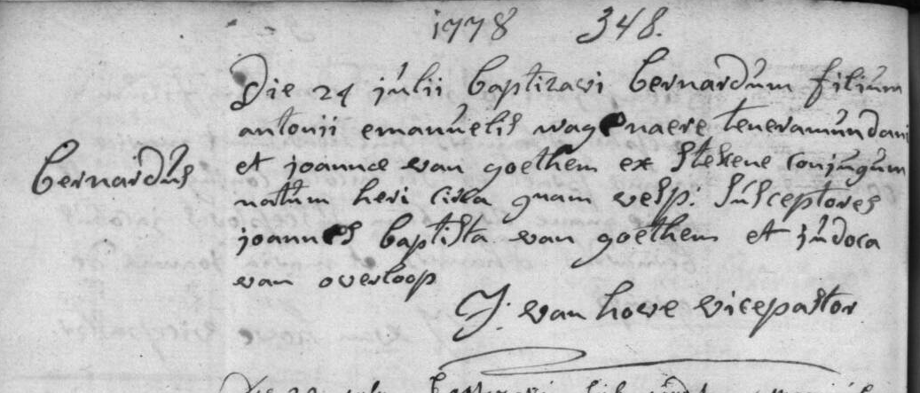 Doopregister 1760-1778 p. 348 Bernardus Wagenaere