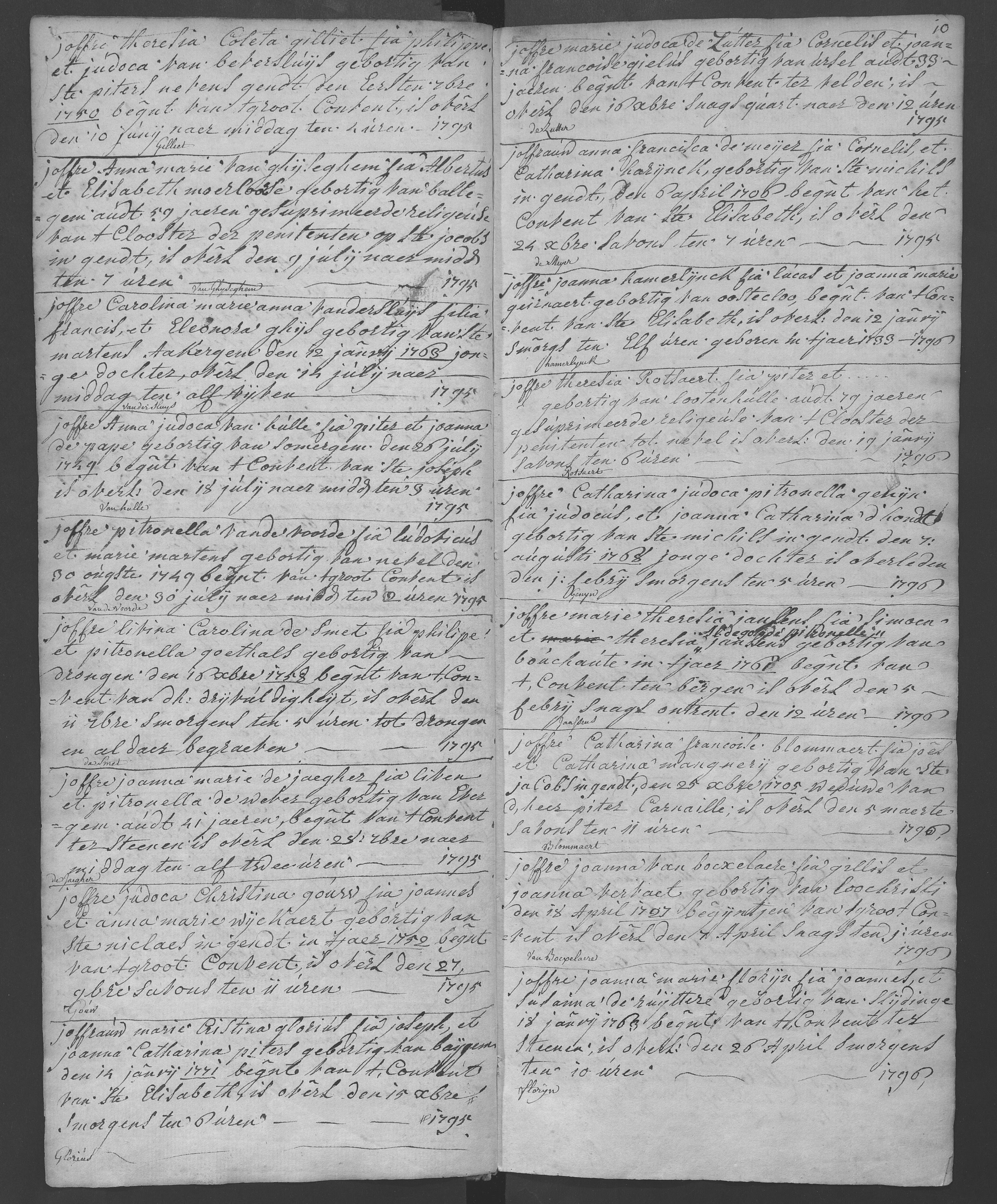 Overlijdens 1788-1796 f0 9 v° Theresia Coleta Gillilet