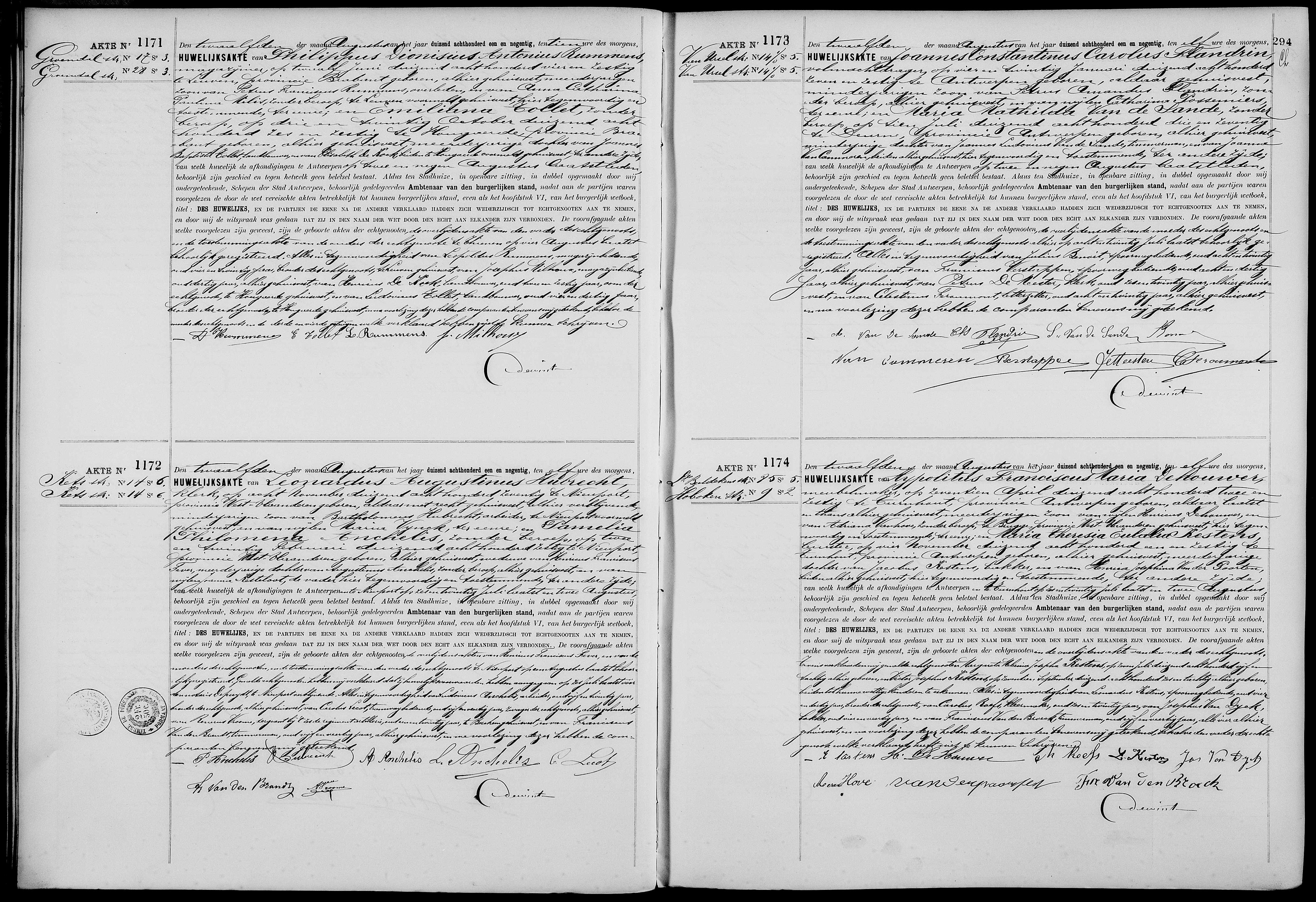 - BS/H 1891 nr. 1174 Hypolitus Franciscus Maria Dehouwer & Maria Theresia Elalie Kestens
