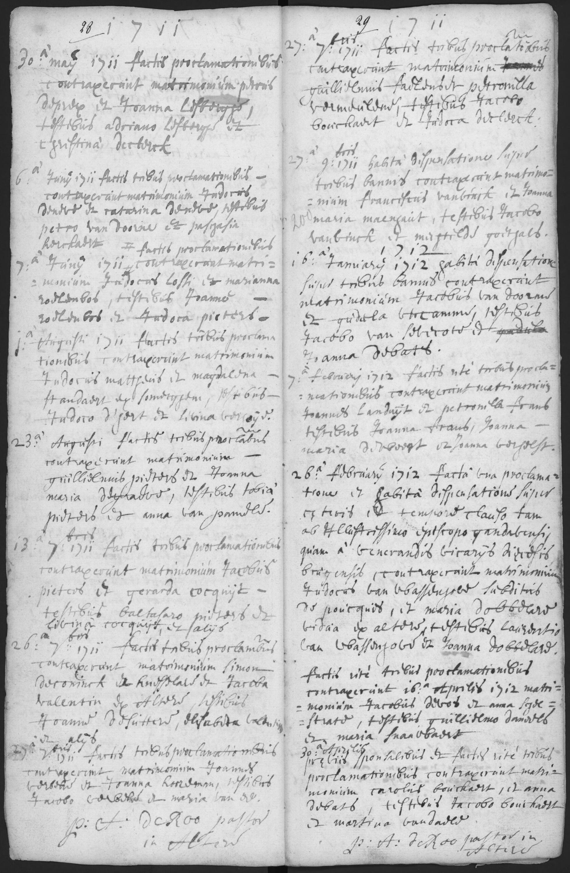 Huwel. 1696-1730 p. 28 Guillielmus Pieters & Joanna Maria De Graeve
