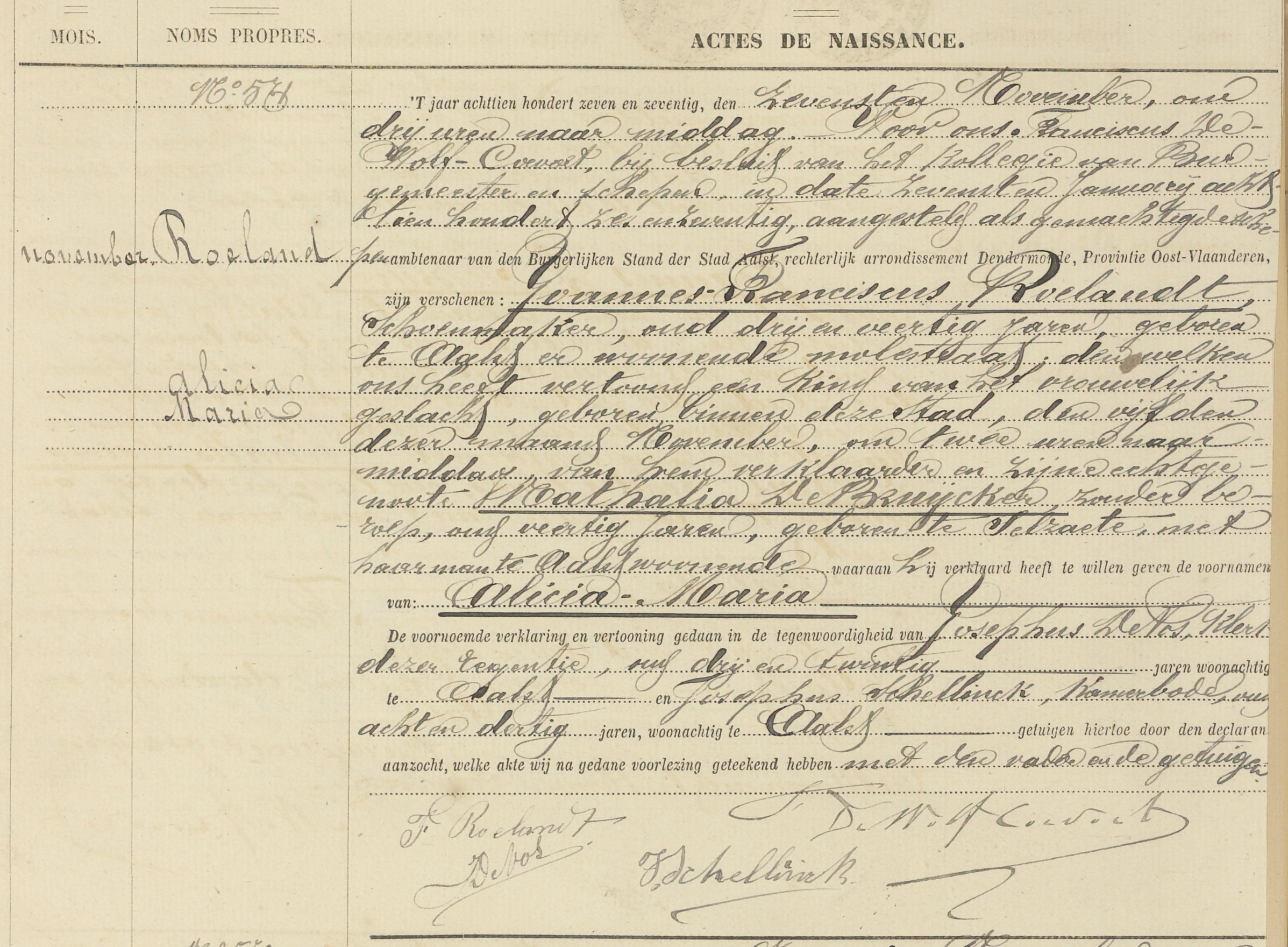 Geboortakte Alicia Maria Roelandt