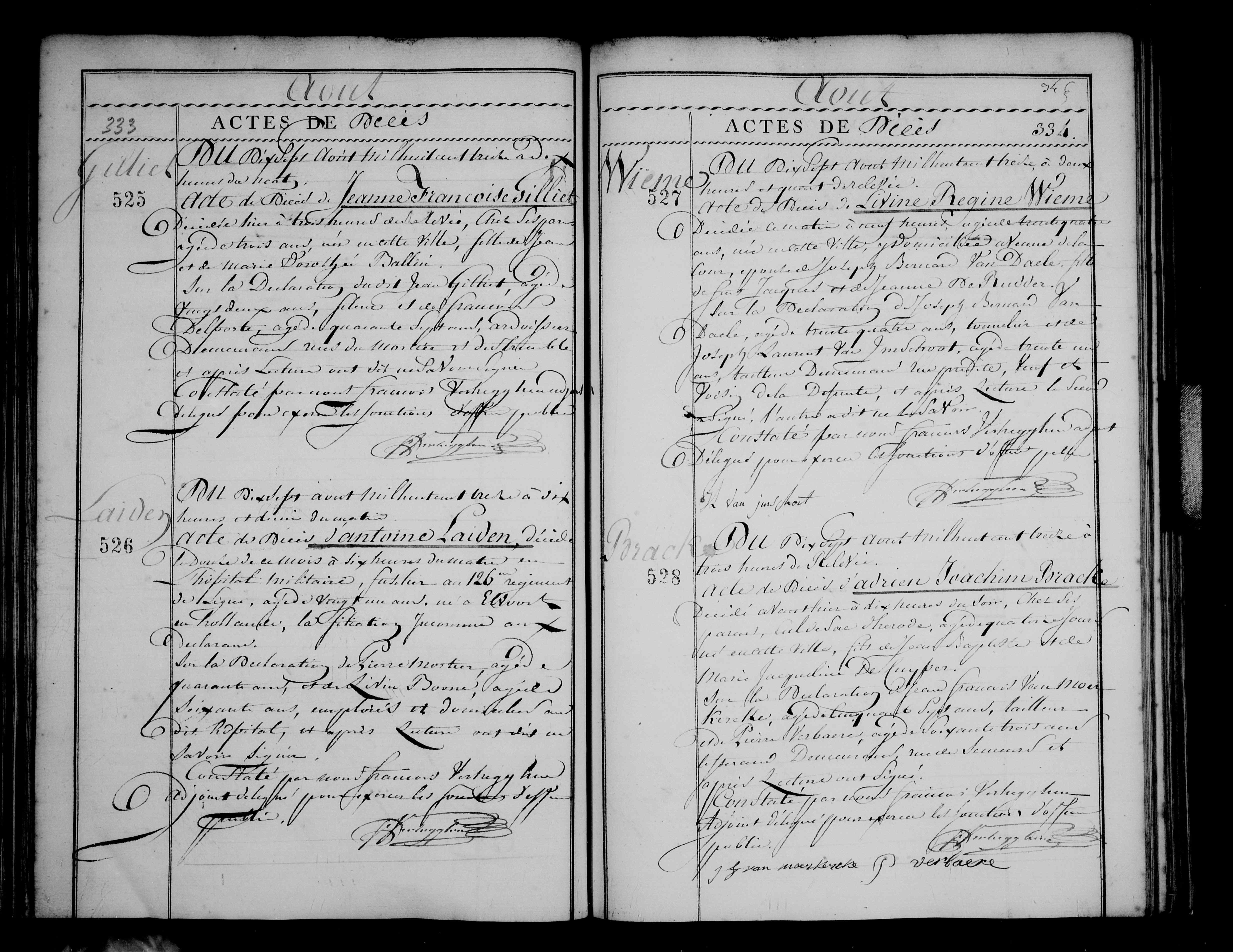 Overlijden, Jeanne Françoise Gilliet