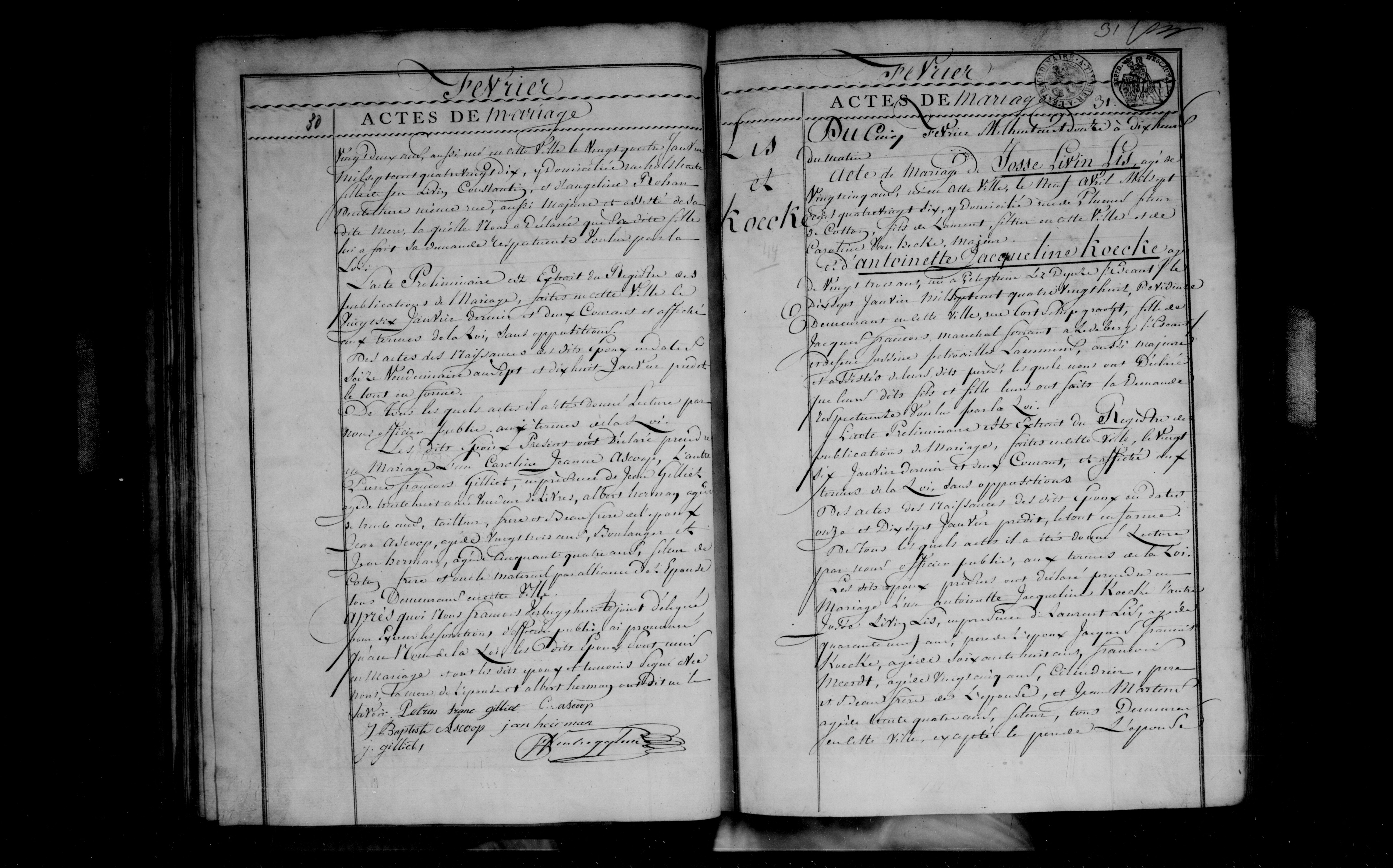 Huwel. Pierre François Gilliet & Caroline Jeanne Ascoop (1812) b