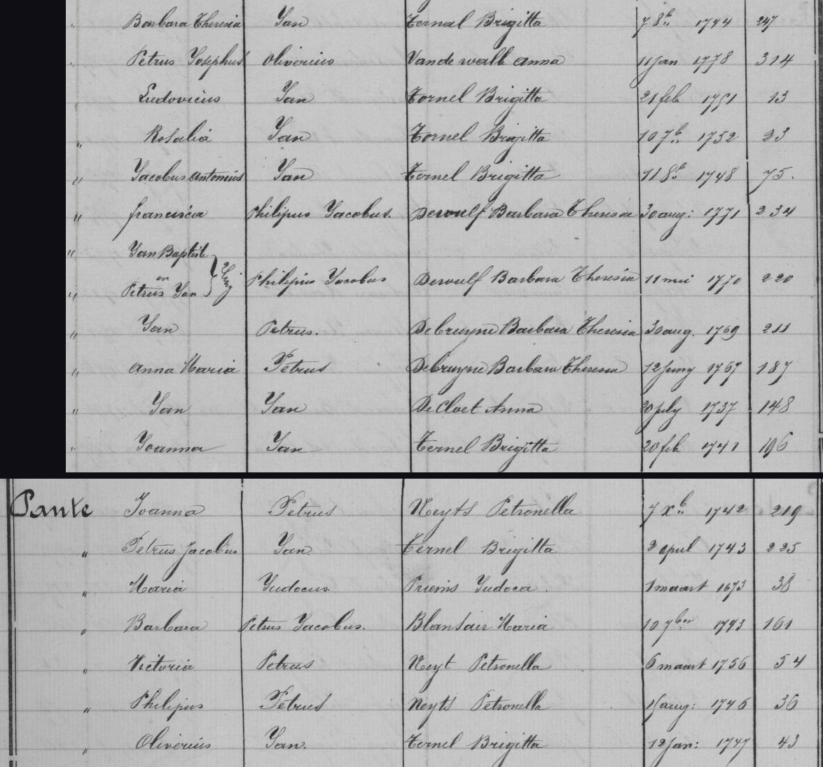 Geboorte, Petrus Jacobus Pante