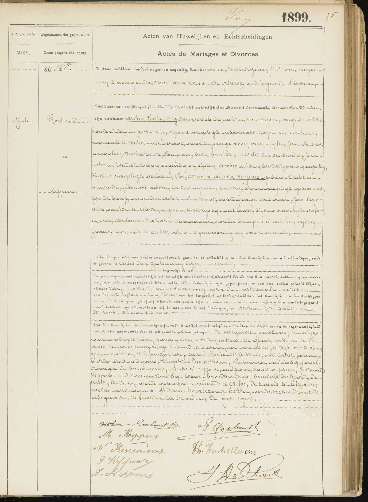 Huwel. Arthur Roelandt & Maria Alicia Keppens (1899)