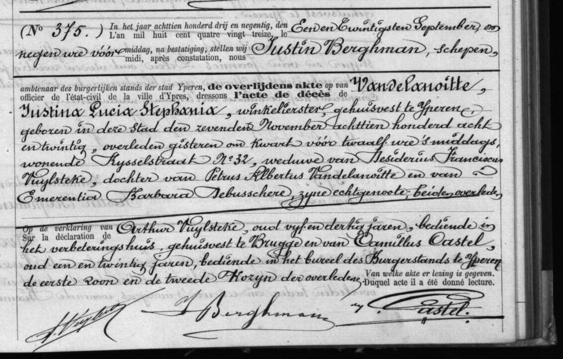 BS/O 1893 nr. 375 Justina Lucia Stephania Van De Lanotte