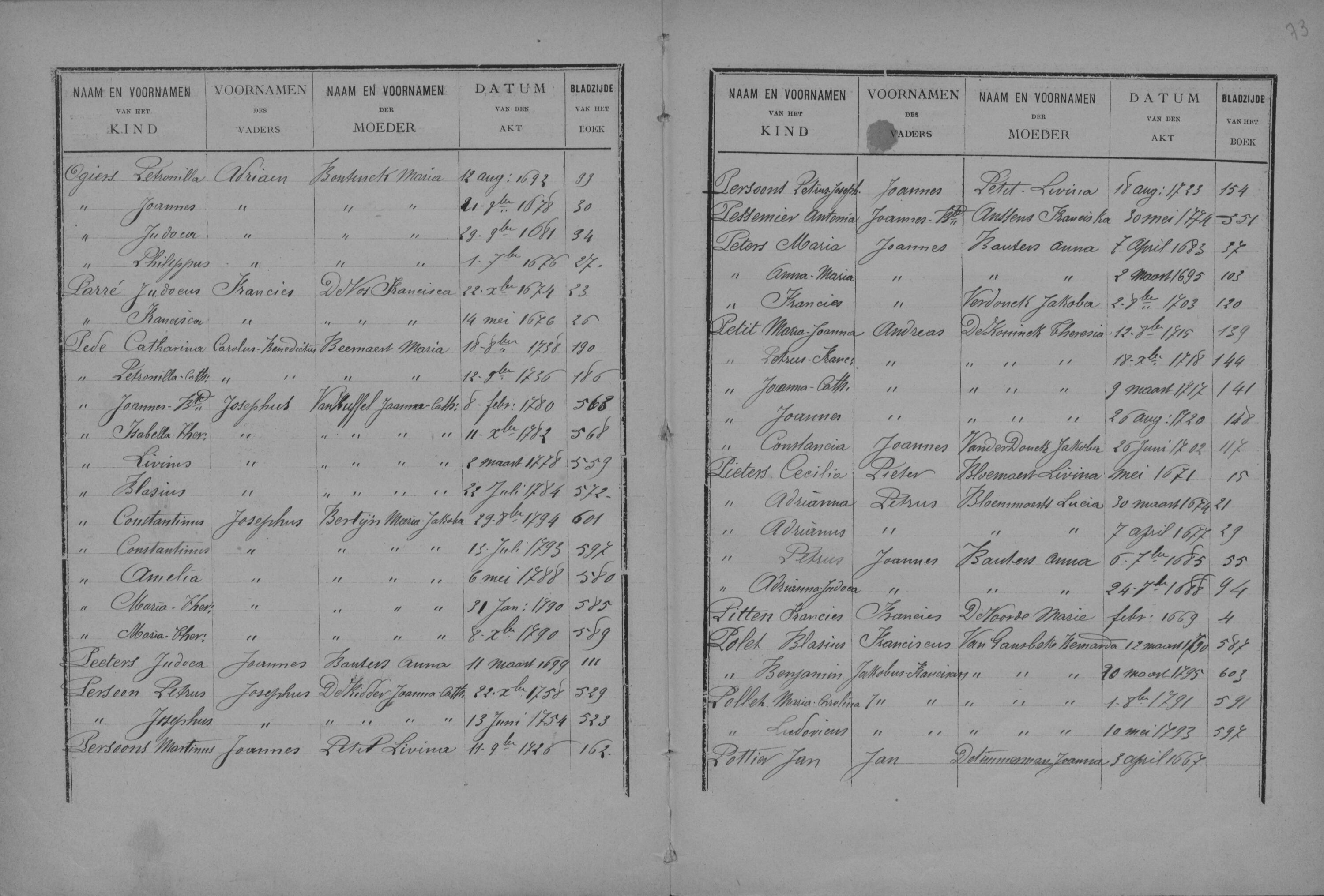 Alfabetische index doop- en geboorteakten (1648 - 1796) f71 v° Pede