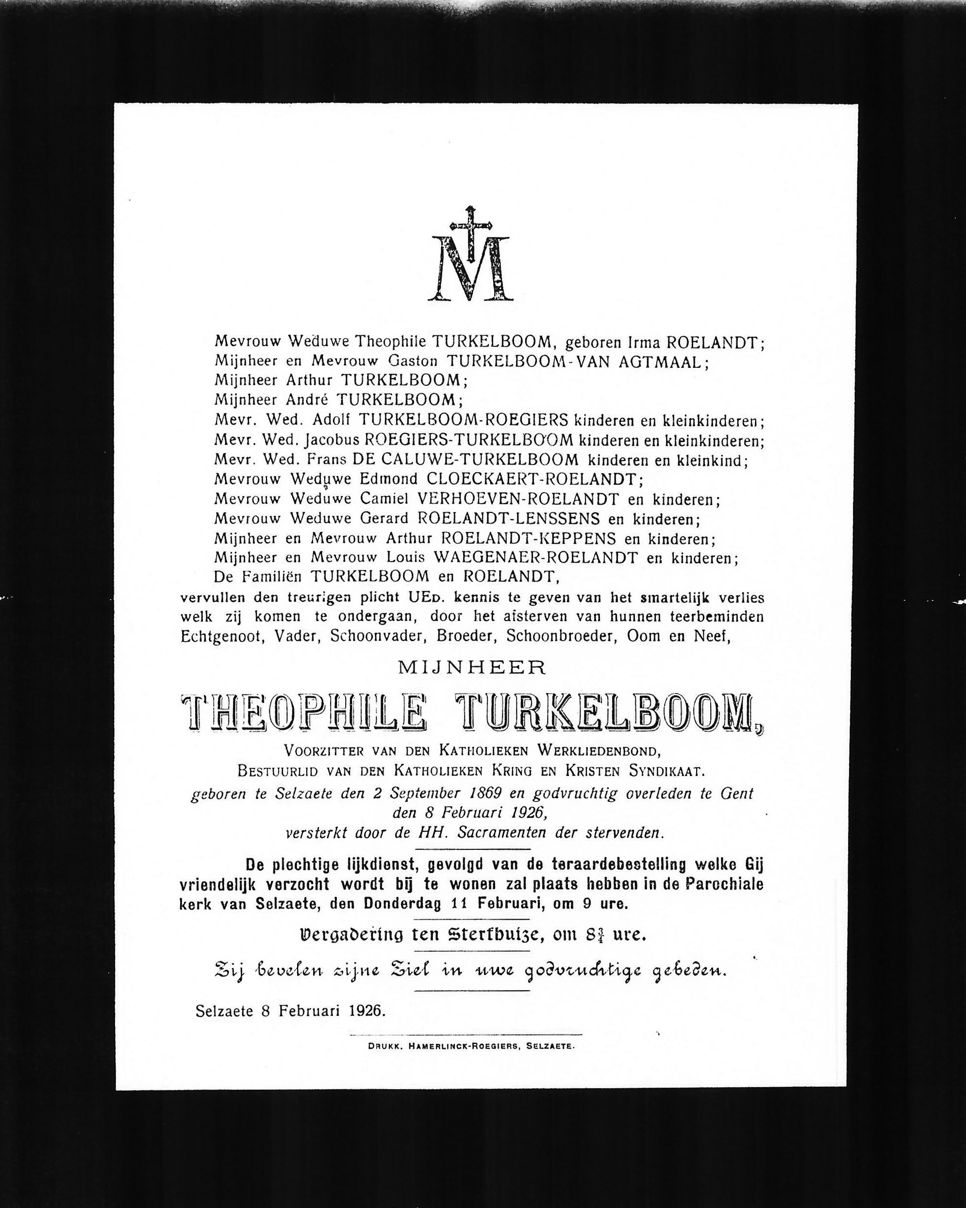 Doodsbrief Theophile Turkelboom