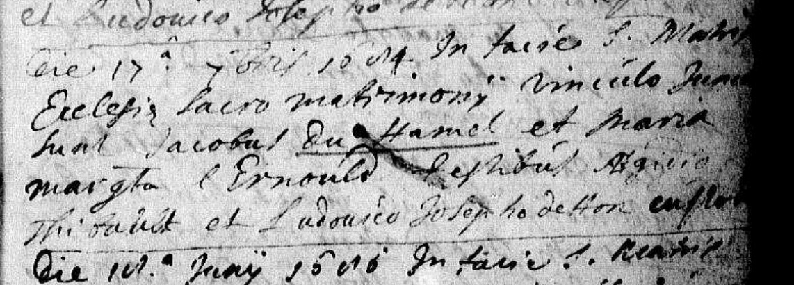 Huwel. Jacques Duhamel & Marie Marguerite Lernould (1684)