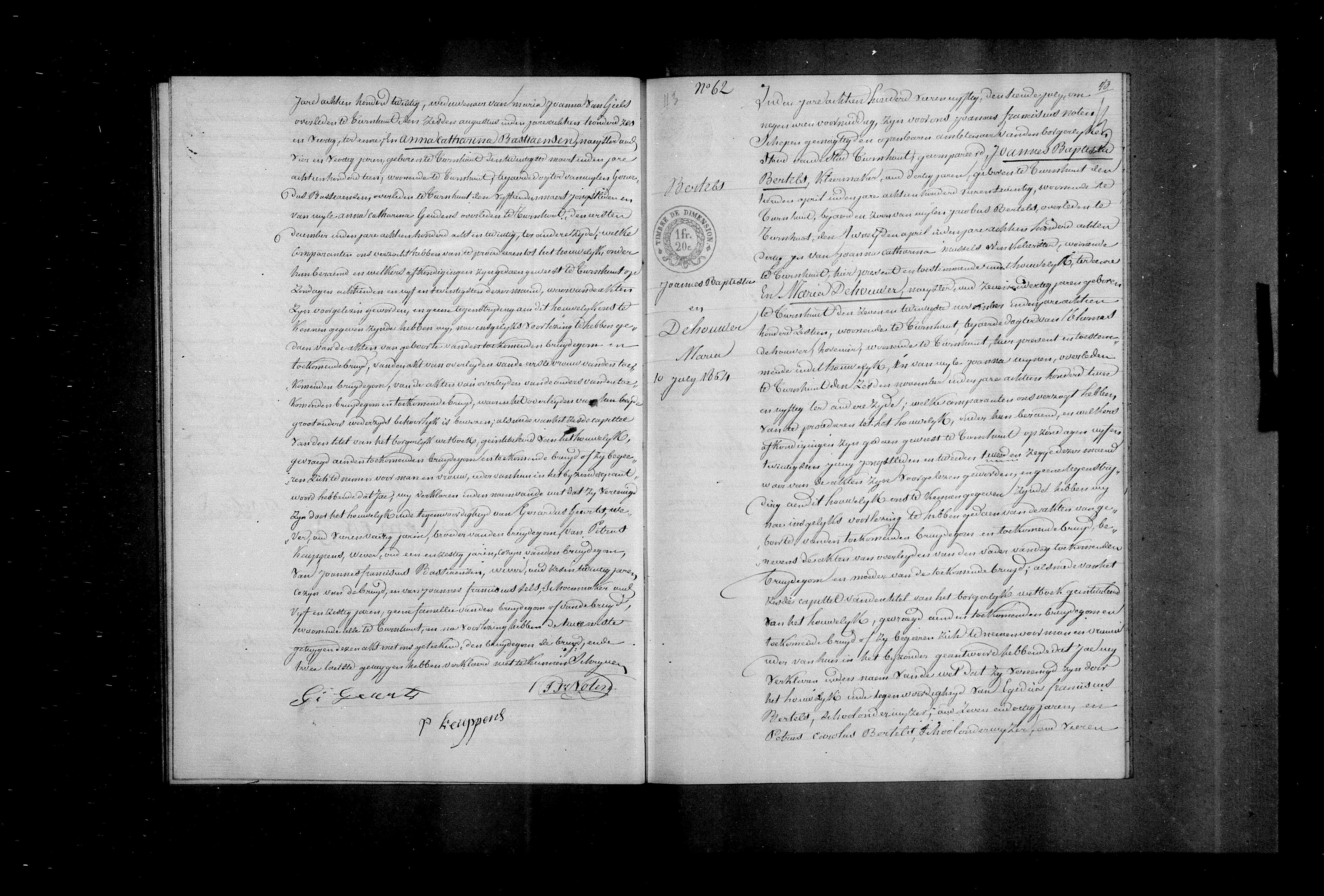 BS/H 1854 nr. 62, huwel. Joannes Baptiste Bertels & Maria Dehouwer