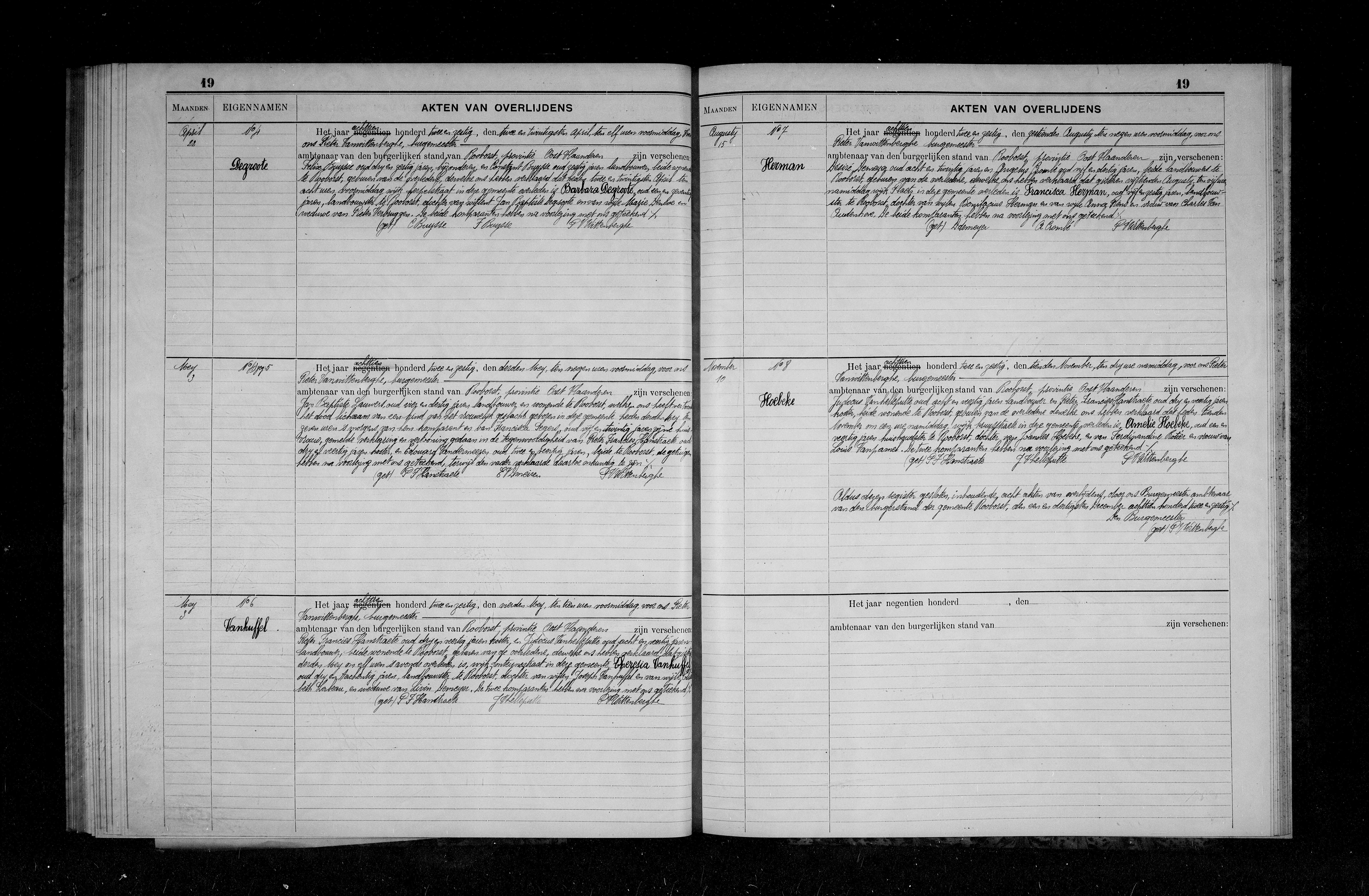 Overlijden, Theresia Van Huffel
