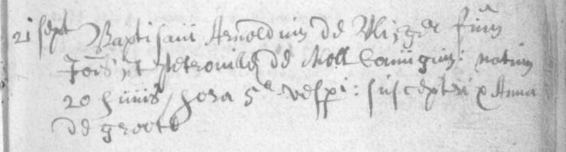 Doop Arnoldus De Vlieger (1667)