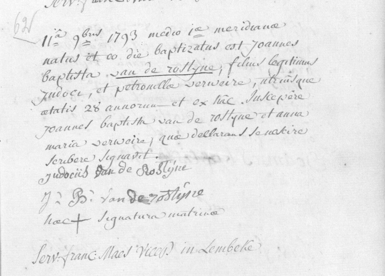 Dopen 1793 nr. 62 Joannes Baptista Van De Rostijne