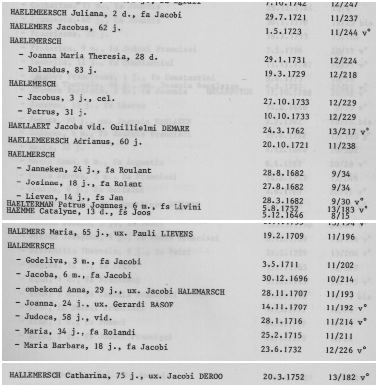 Index overl. Ruiselede 1645-1801 Haelemeersch