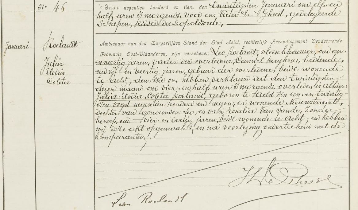 Overlijden, Julia Elodia Coleta Roelandt