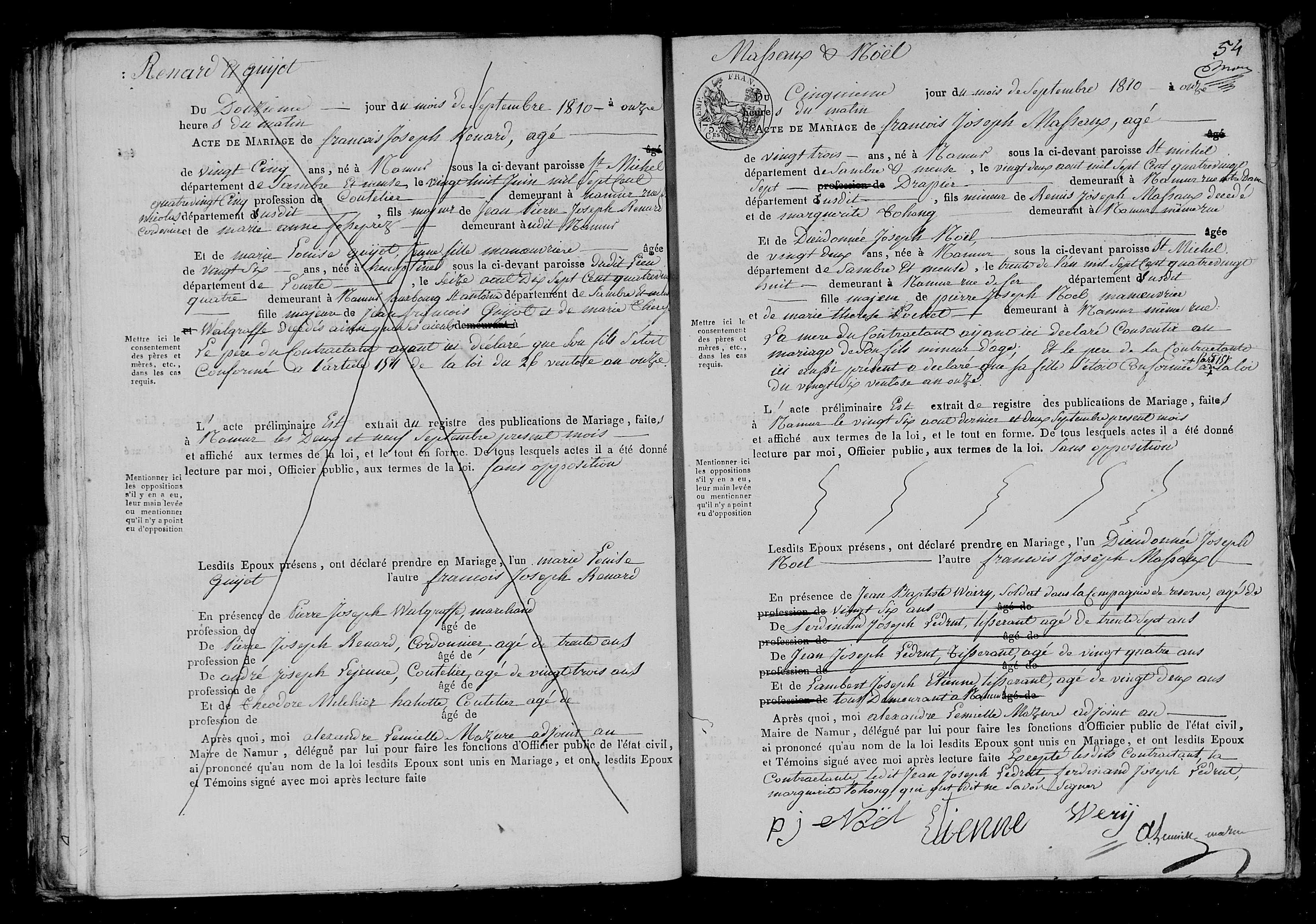 BS/H 1810 p. 54 Francois Joseph Massaux en Dieudonnée Joseph Noël