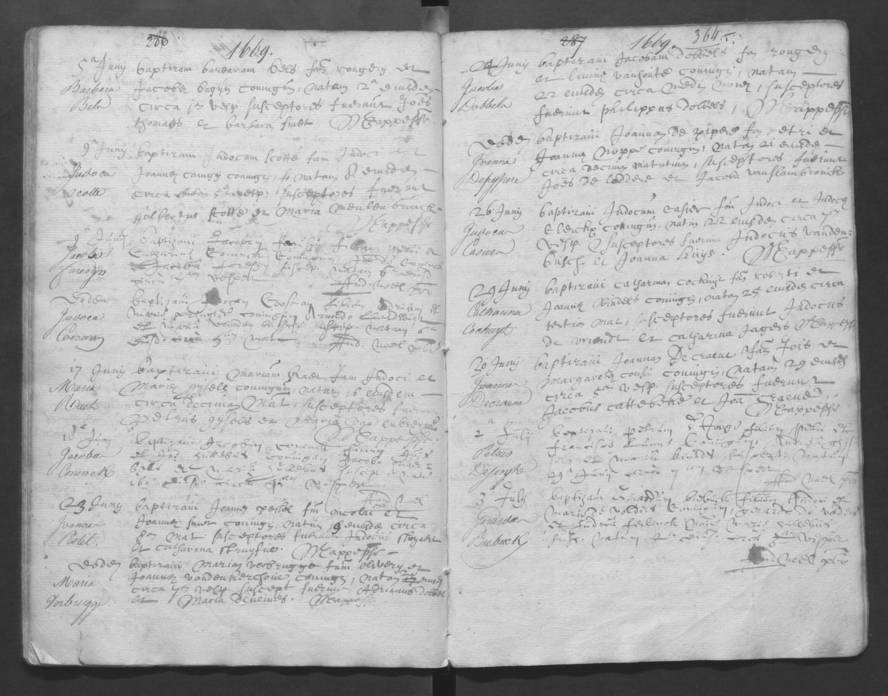 Dopen 1651-1671 p. 287 Jacoba Dobbels