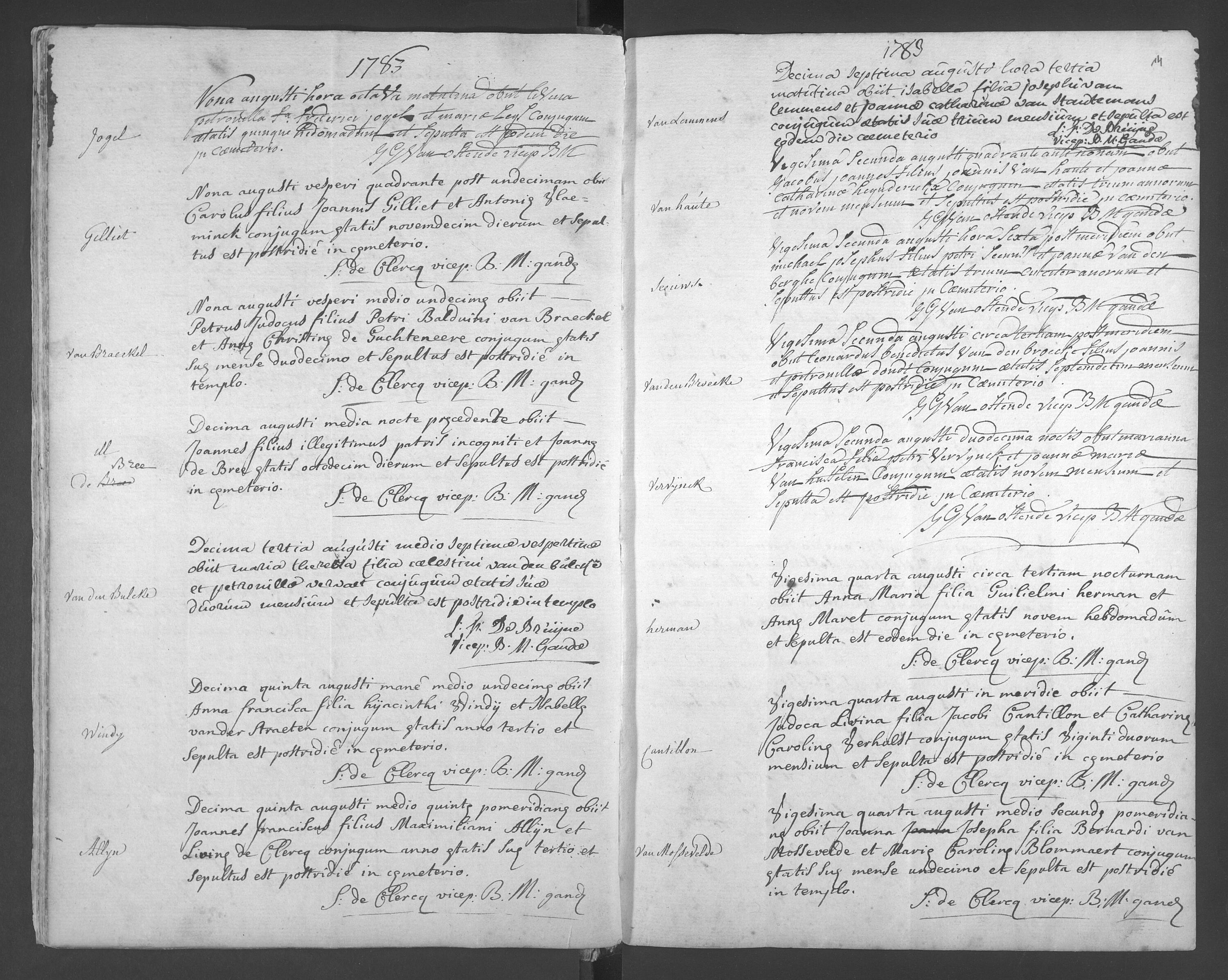 Begr. 1782-1794 f13 v° Carolus Gilliet