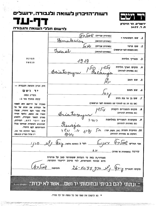 Yadvashem Israel Szmulewicz
