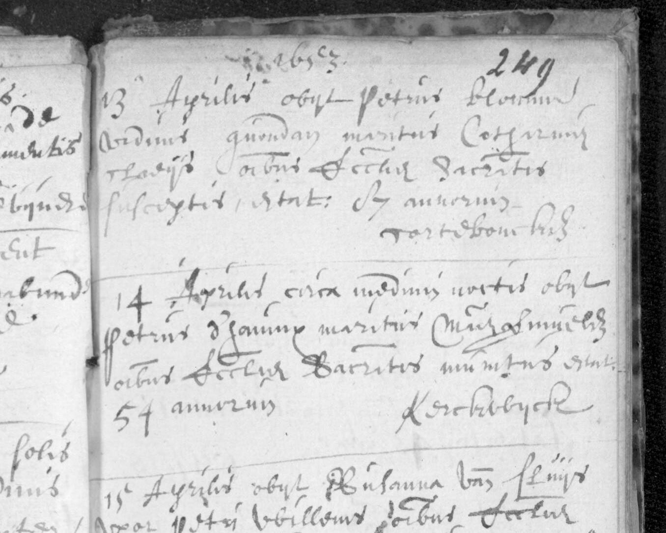 Overlijdens 1646-1660 p. 249 Petrus Blomme