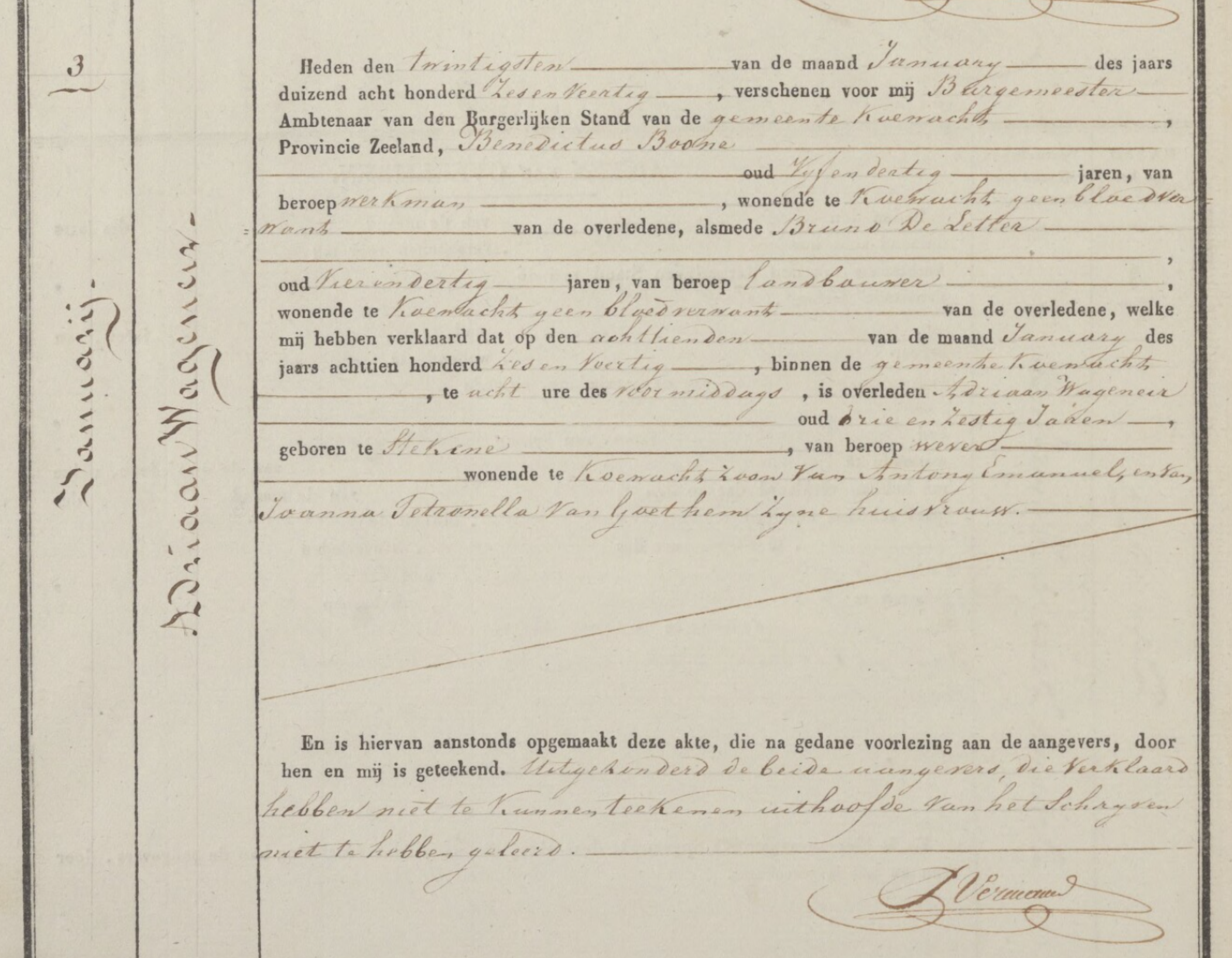 BS/O Koewacht overlijdensakten burgerlijke stand, Koewacht, archieftoegang 25, inventarisĀnumĀmer KOE-O-1846, 1846, aktenummer 3