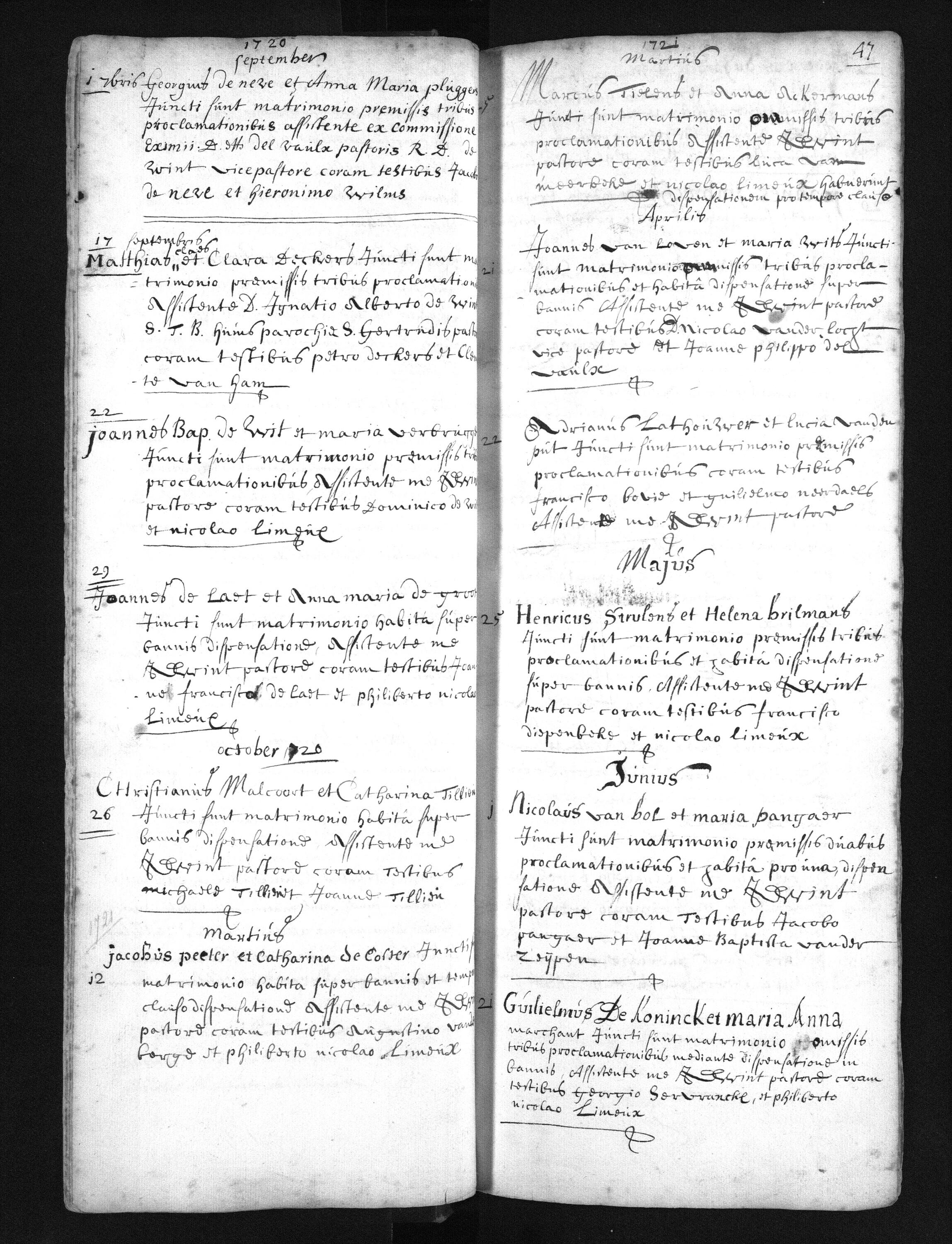 Huwel. 1694-1781 f47 r° Henricus Strulens & Helena Brilmans