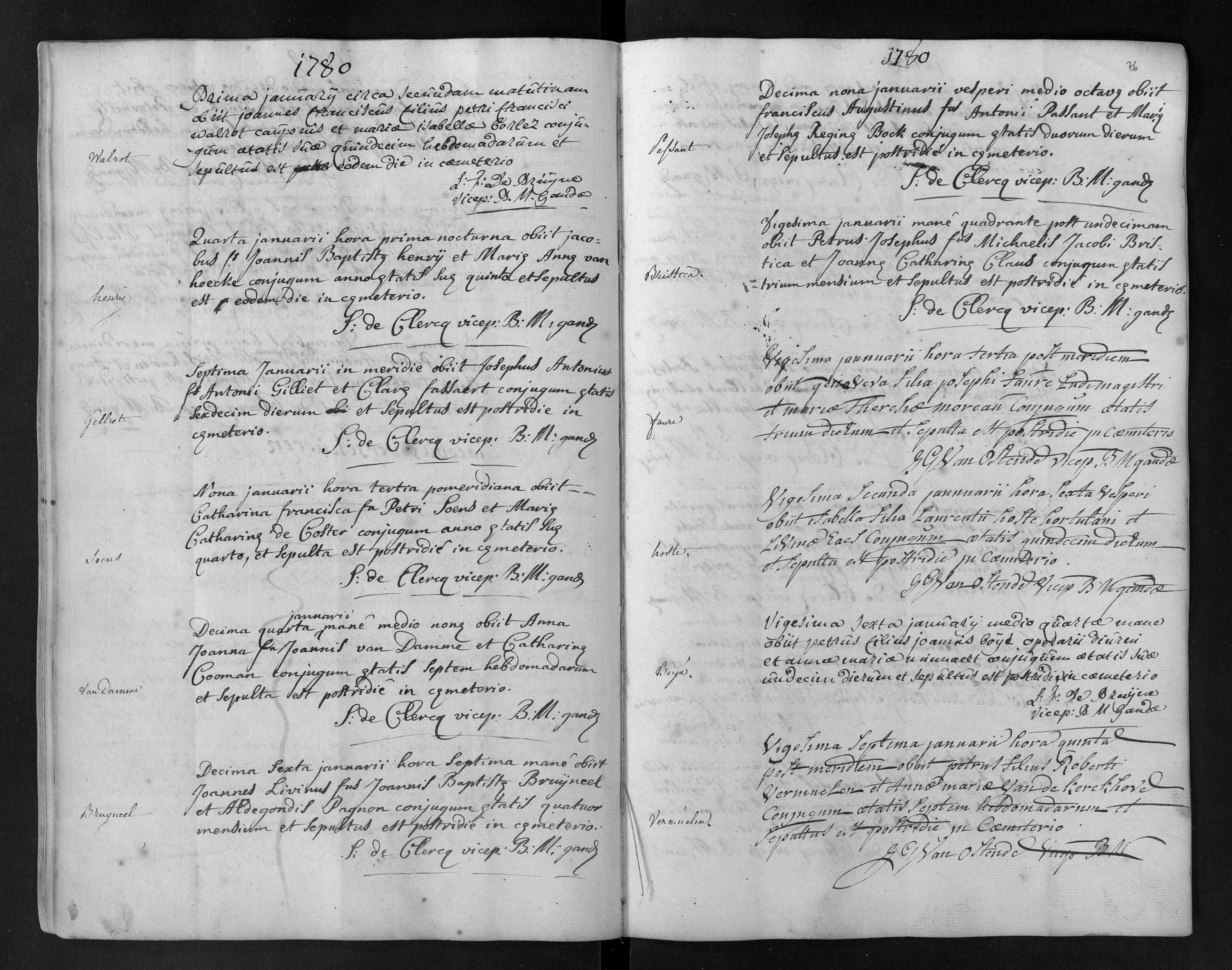 Begr. 1770-1782 f75 r° Josephus Antonius Gilliet