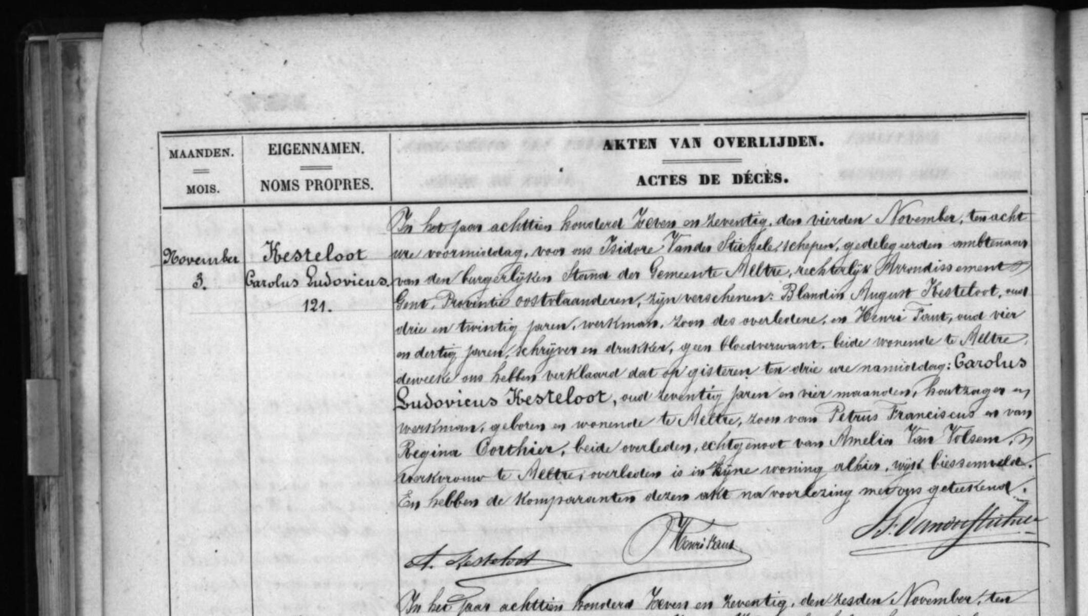 Overlijdens 1877 nr. 121 Carolus Ludovicus Kesteloot