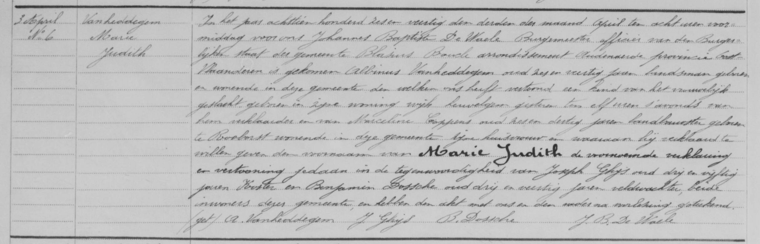 - Geboorte, Marie Judith Van Heddegem [E0462]