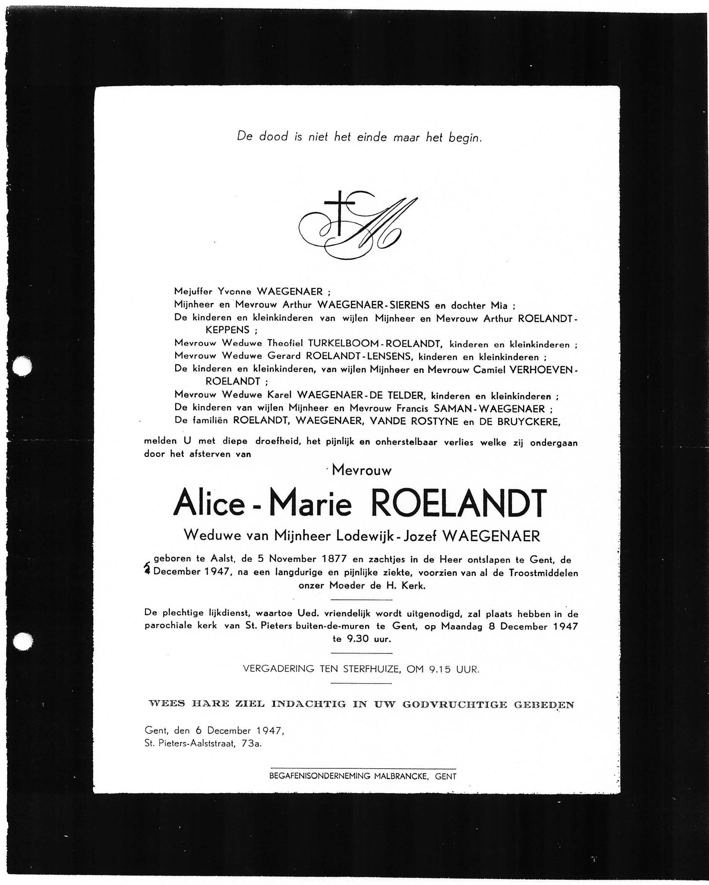 Doodsbrief Alice-Marie Roelandt