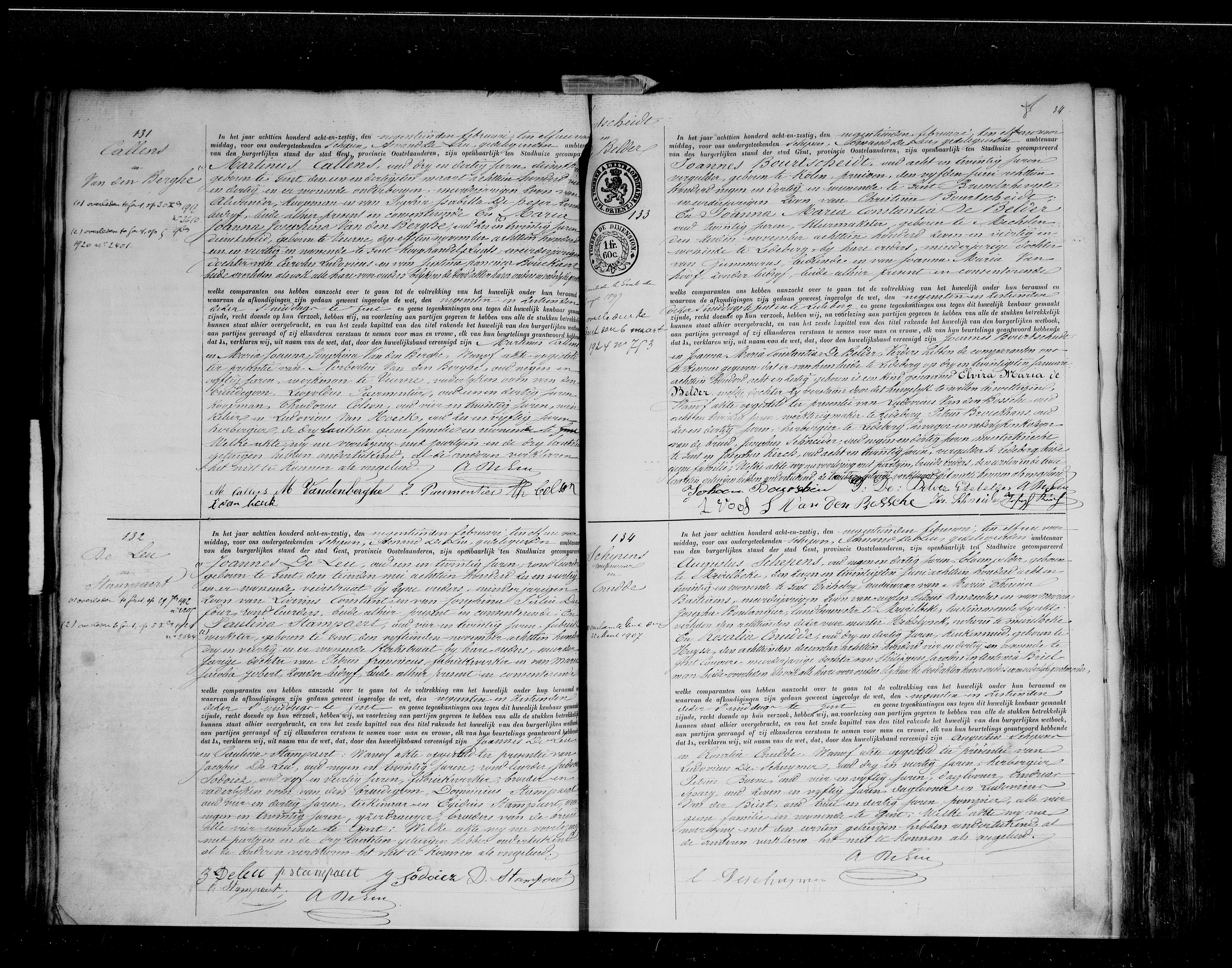 BS/H 1868 #133 Joannes Bourtscheidt & Johanna Maria Constantia De Belder