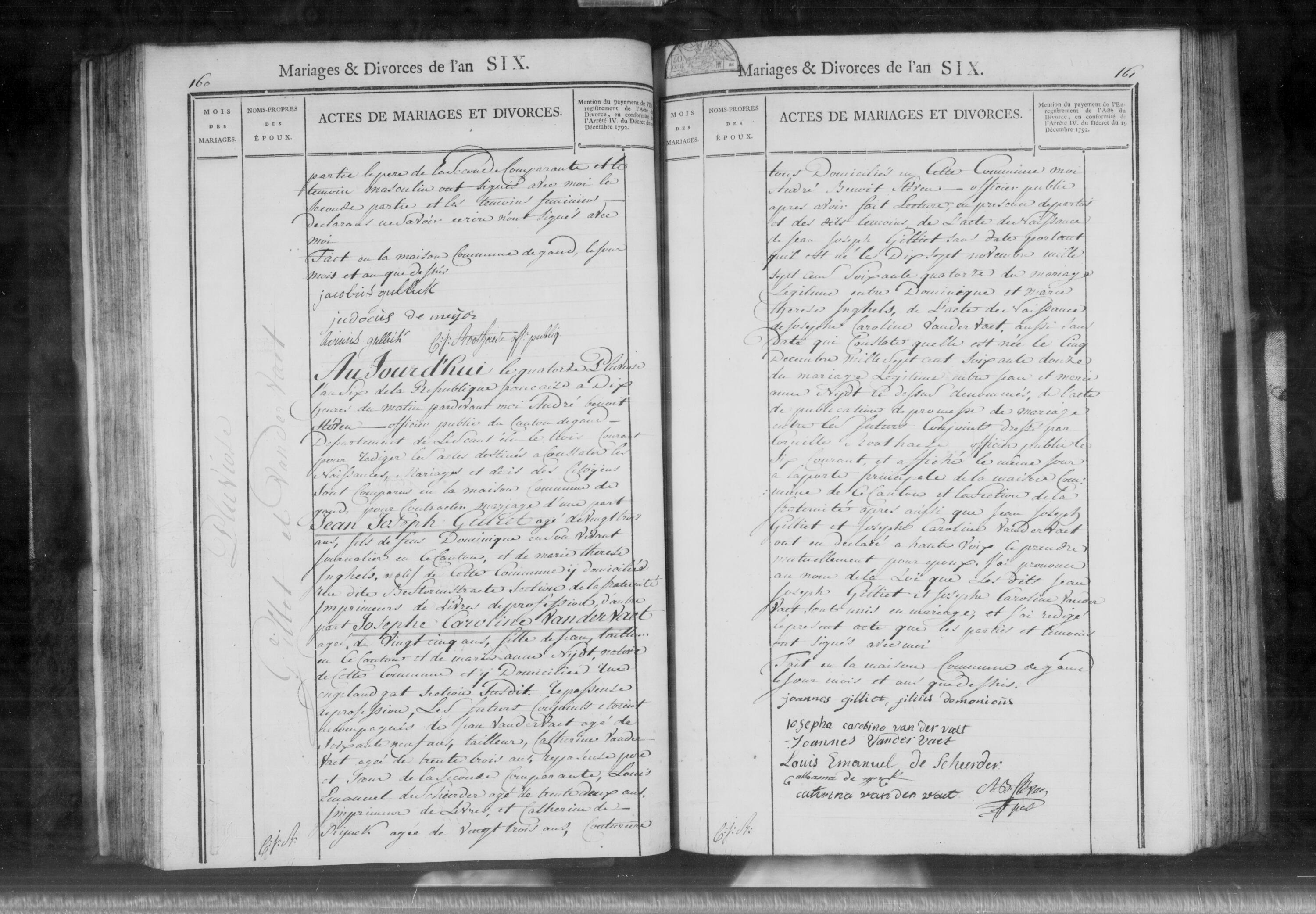 Huwel. Jean Josephe Gilliet & Josephe Caroline Vandervaet (1798)