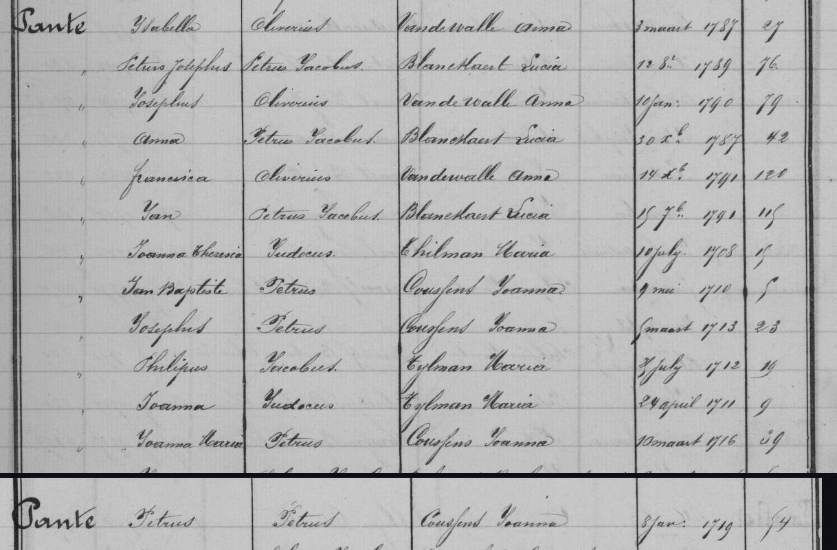 Dopen Pante, Ruddervoorde 1623-1793 bis